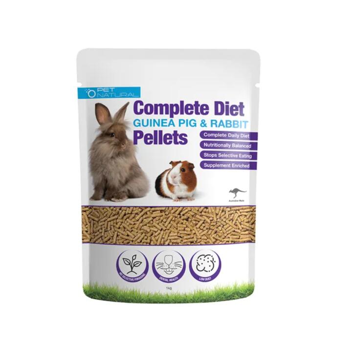 The Pet Naturals Complete Diet Pellets for Guinea Pigs and Rabbits offer balanced nutrition in every single bite to prevent selective feeding. This formula ensures your pet receives a consistent blend of essential vitamins and minerals without any added sugar, supporting their overall health from nose to tail.